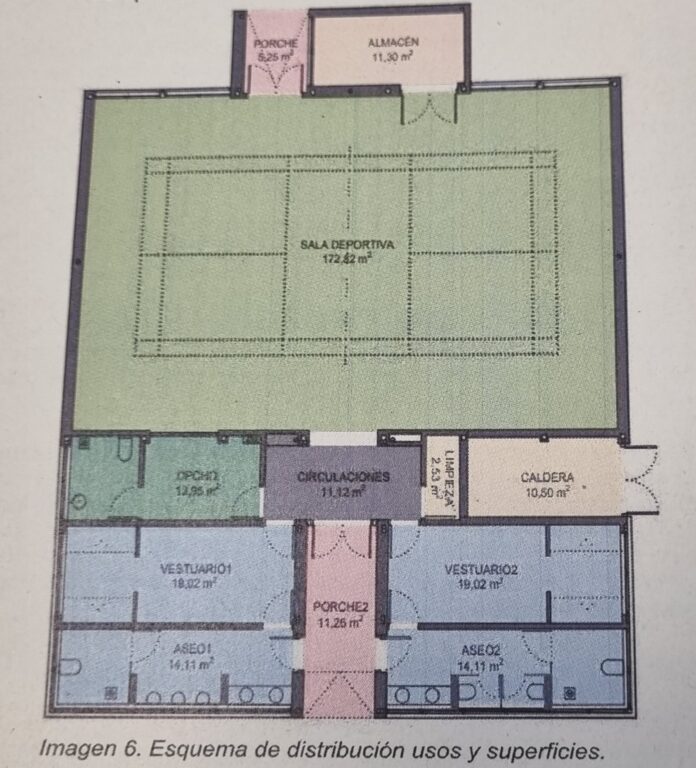 La financiación incluye el presupuesto de obra y la asistencia técnica de la construcción de un gimnasio de 304,99 m2 de superficie útil y 350 m2 construida, en un espacio externo en la zona norte de la parcela del centro escolar, junto a la zona de juegos de Primaria, así como el acondicionamiento del entorno de acceso al mismo. El edificio contará con un almacén, una sala deportiva de 172,82m2, el despacho del monitor, dos aseos y dos vestuarios. Tanto los accesos como los vestuarios estarán cubiertos por porches. El gimnasio tendrá  un sistema de ventilación permanente y la iluminación natural se valorará en el diseño para evitar que los usuarios se deslumbren.