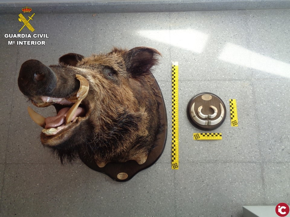 Se han recuperado 16 piezas ilegales de taxidermia entre los que se encuentra la cabeza de un jabalí que pudiera haber sido cazado mediante lazo. El presunto taxidermista se enfrenta a una sanción que puede llegar a alcanzar los 60.000 euros.