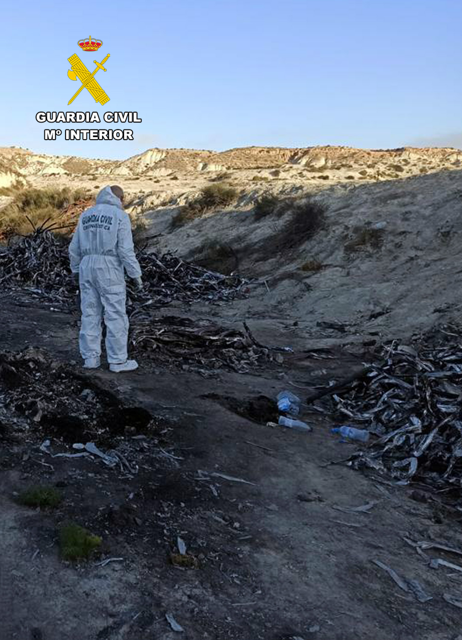 Los primeros pasos de la operación, llevados a cabo en colaboración con el Servicio Cinológico y el Servicio de Protección de la Naturaleza (SEPRONA), permitieron al equipo ROCA localizar grandes cantidades de restos de camisas de cableado de cobre quemadas en una zona forestal de la pedanía murciana de Corvera, de difícil acceso y apartado de núcleos poblacionales.