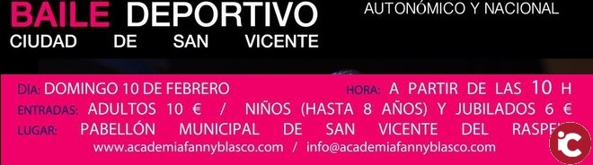 Los ritmos latinos y de palacio se entre mezclaron el domingo 10 de febrero en el VI Trofeo de Baile Deportivo Ciudad de San Vicente. Decenas de parejas de diferentes puntos de la geografía española compitieron en este evento deportivo ya consolidado en el municipio. Los resultados obtenido por las parejas de baile fueron puntuables para el rankig autonómico y nacional.