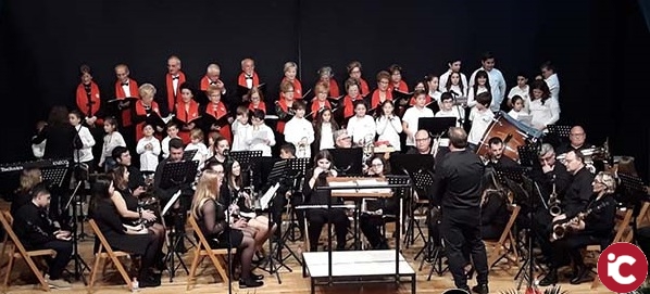 El Teatro Municipal Cervantes de Sax acogió el Primer Concierto de Navidad que en esta ocasión interpretaron de forma conjunta la Coral Polifónica San Blas, la Sociedad Instructiva Musical Sones de Sax, con la banda juvenil y el coro de los más jóvenes de la banda de música, la voz de Shakira Martínez, dirigidas al unísono por las batutas de Pepe Calpena y Rubén Muñoz, que interpreto al piano, con la presentación de Joaquín Estevan.