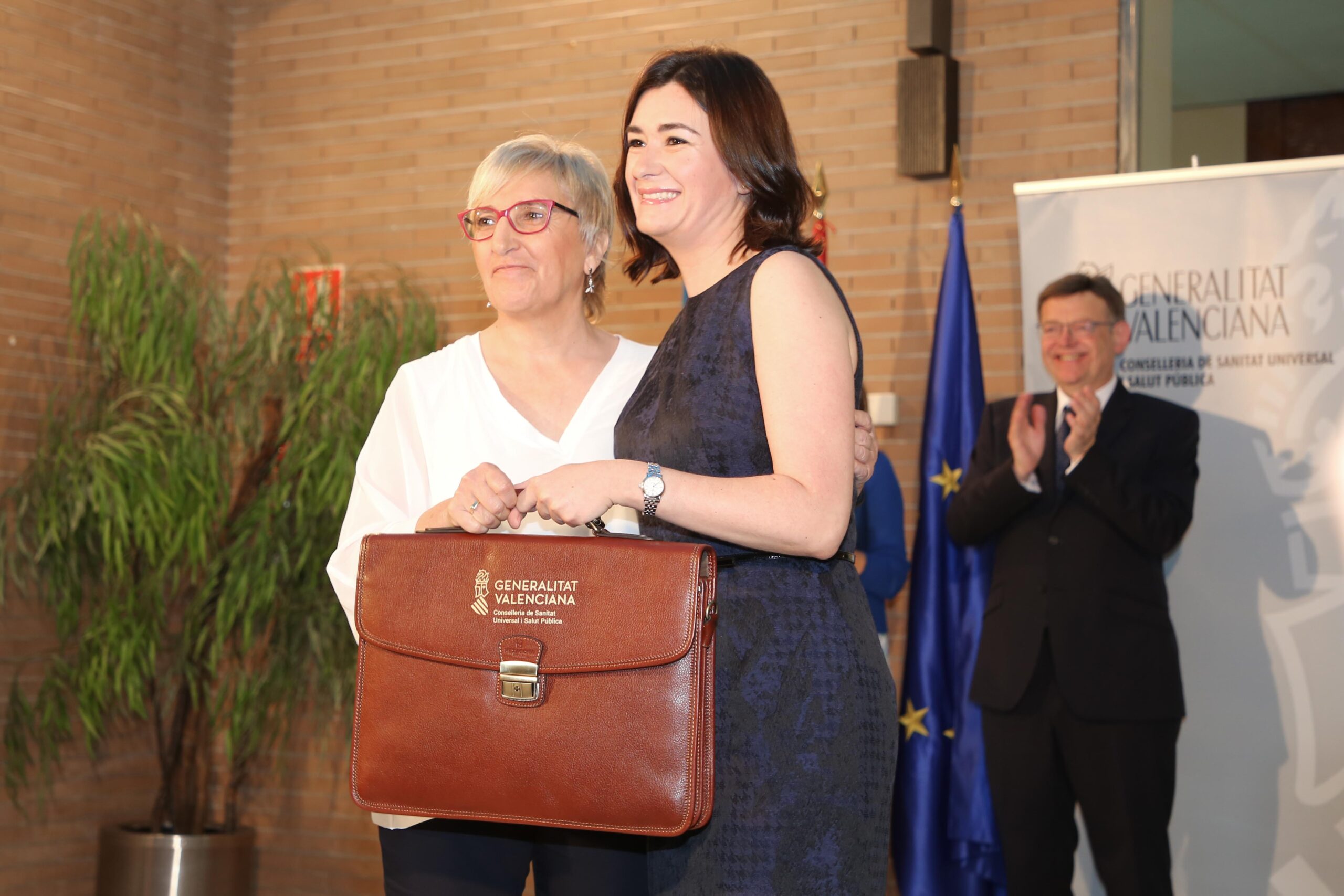 La exconsellera y nueva minsitra de Sanidad, Carmen Montón, ha agradecido a los profesionales su trabajo en equipo durante estos tres años, así como al president de la Generalitat por «permitirnos formar parte del gobierno del cambio».