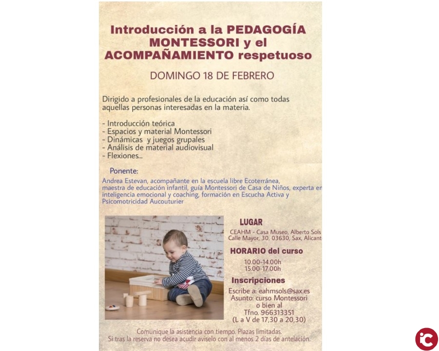 El próximo sábado 17 de febrero en el CEAHM Alberto Sols, Andrea Estevan impartirá una charla sobre la educación Montessori y el acompañamiento respetuoso.