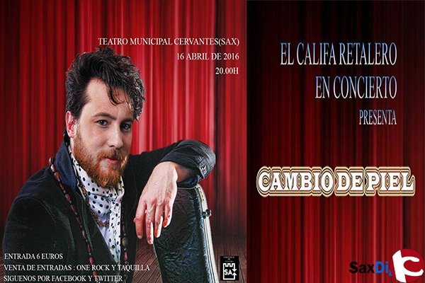 El Teatro Municipal Cervantes de Sax, acogió ayer sábado 16 de abril, el concierto del eldense El Califa Retalero, que presentó su último disco «Cambio de piel».