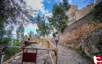 Unos diez metros del camino peatonal de acceso al castillo de Sax y que cedieron el pasado mes de febrero siguen sin arreglarse.