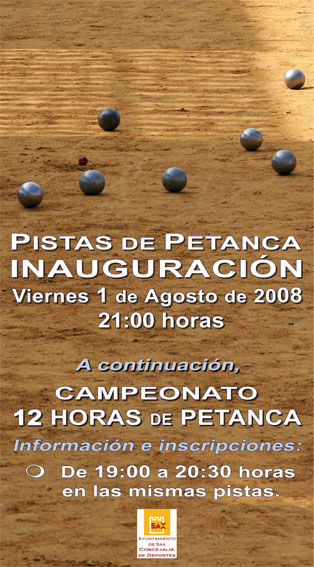 Con motivo de la inauguración, el mismo viernes se disputará un campeonato de 12 Horas de Petanca, de manera que los allí presentes podrán, al mismo tiempo, comprobar de primera mano los trabajos de mejora que se han llevado a cabo y disfrutar de la exhibición.