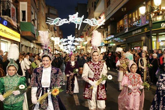 Catorce bandas de música, abanderados y miles de espectadores ejercieron como testigos de un espectáculo sin precedentes por su colorido y por su simbolismo. Pero las actrices principales de esta memorable función fueron las mujeres sajeñas, que con su porte y sus originales vestimentas rindieron tributo a más de medio siglo de protagonismo de la mujer en las fiestas de San Blas.