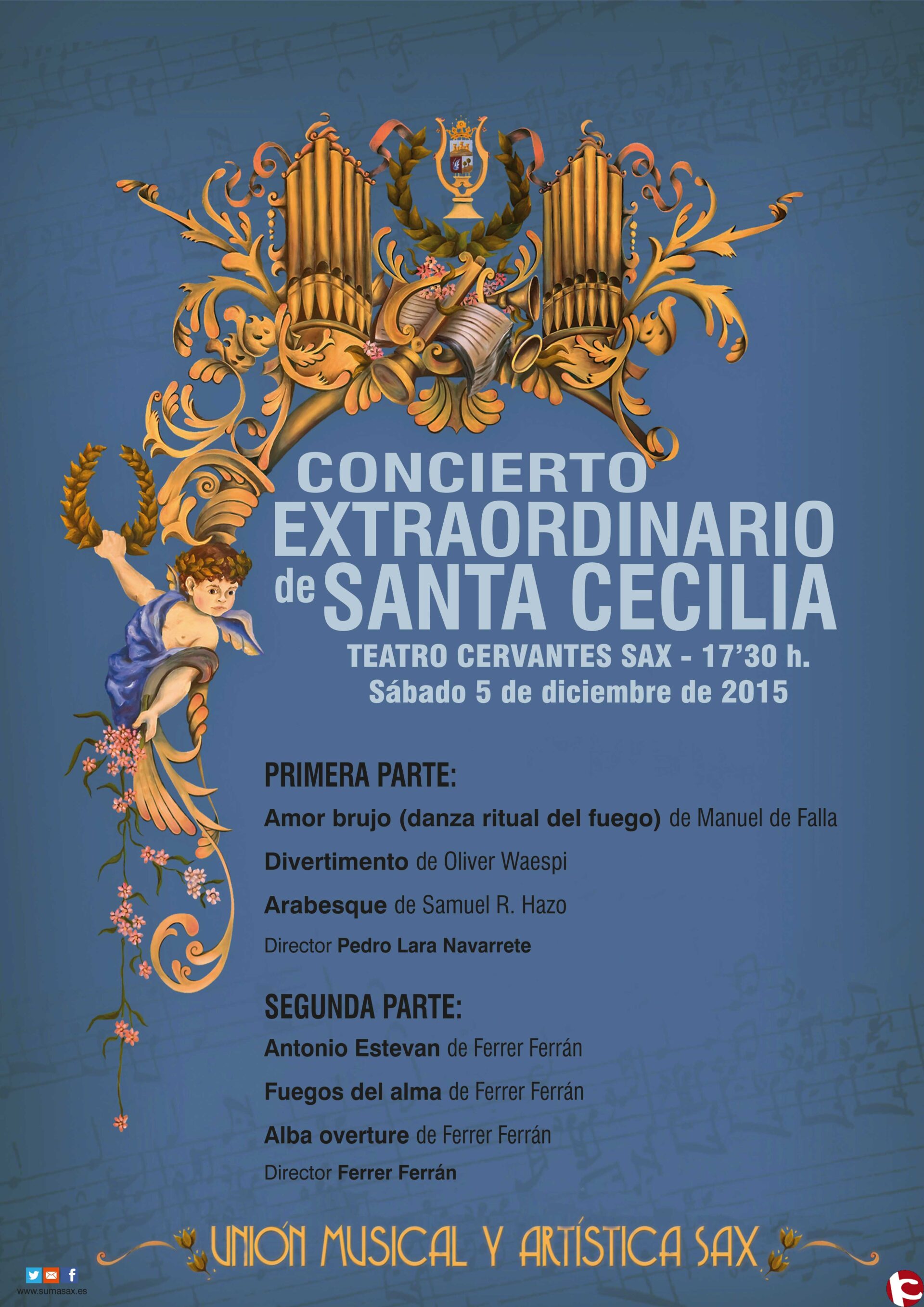 El Teatro Cervantes de Sax acogerá este sábado, 5 de diciembre, a partir de las 17.30 h., el Concierto Extraordinario en Honor a Santa Cecilia de la Sociedad Unión Musical y Artística de Sax.