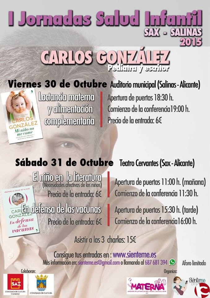 El famoso pediatra Carlos González nos acompañará en las I Jornadas de Salud Infantil de Sax-Salinas dando 3 conferencias en Sax y Salinas.