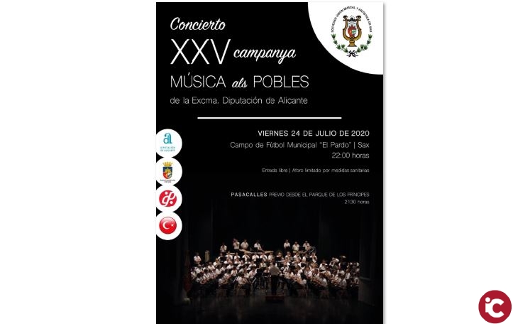La Sociedad Unión Musical y Artística de Sax ofrecerá el próximo 24 de julio su primer concierto desde que se decretara el pasado mes de marzo el estado de alarma.