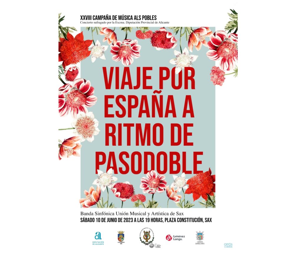 La Unión Musical y Artística de Sax celebrará el próximo sábado 10 de junio a las 19:00h en la Plaza de la Constitución un nuevo concierto al aire libre con el lema ‘Viaje por España a ritmo de pasadoble’.