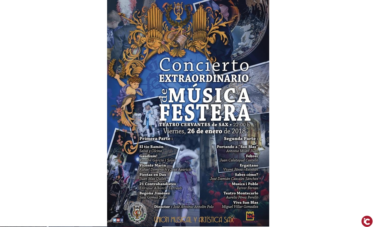 El Teatro Cervantes acogerá este viernes, 26 de enero, a las 22 h., el concierto de música festera que la banda sajeña dedica cada año a las comparsas, reinas y damas y festeros en general.