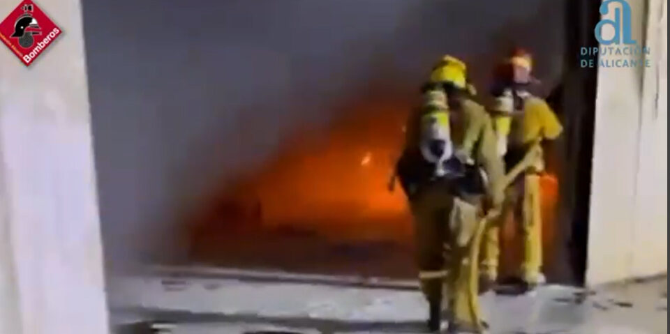 Los Bomberos del Consorcio Provincial sofocan un incendio en un almacén de productos fitosanitarios en Sax