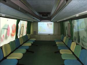 Una vez en el interior del autobús, la proyección de un vídeo sobre la separación y reciclaje de residuos y una pequeña lectura de un relato por los monitores de la campaña es la tarjeta de visita de APRENDE A RECICLAR! con el fin de fomentar el reciclaje y motivar a los niños a no abandonar residuos fuera de los contenedores específicos para ello.