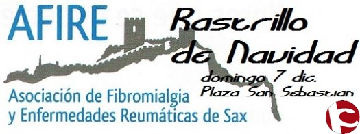 La Asociación de afectados de fibromialgia de Sax AFIRE, organiza un Rastrillo de Navidad, que llegan dias de alegria y hay mucho para regalar. Será en la Plaza de San Sebastián el domingo 7 de diciembre.