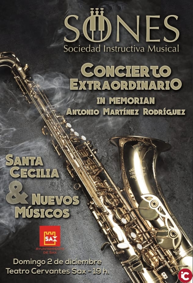 El pasado domingo dia 2 de diciembre, la Sociedad Instrucitva Musical Sones de Sax celebró el concierto extraordinario de Santa Cecilia, in Memoriam de Antonio Martínez Rodríguez . Horas antes fue la recogida de los nuevos músicos.