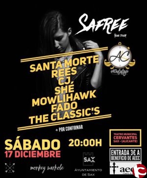 Este sábado, 17 de diciembre, Safree ofrece un concierto en el Teatro Cervantes de Sax, a las 20 horas.