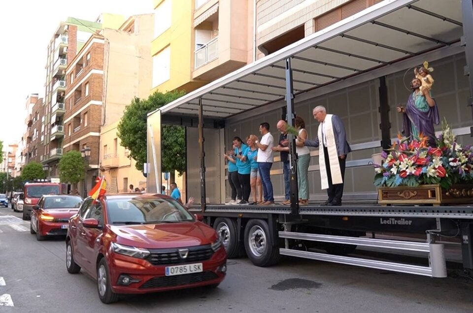 Gran Vía. Para cerrar los actos se procedió al traslado de la imagen de San Cristóbal, patrón de los conductores, de vuelta a su ermita.