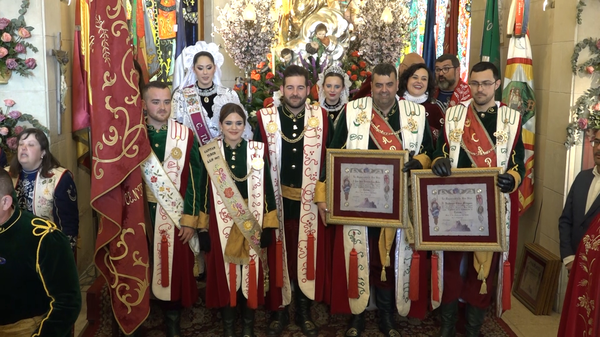 Uno de los momentos más emotivos llegó con el Cambio de Capitanes, en el que los nuevos capitanes de cada comparsa recibieron sus cargos en presencia de la imagen del Patrón, mientras los festeros y acompañantes besaban la reliquia.