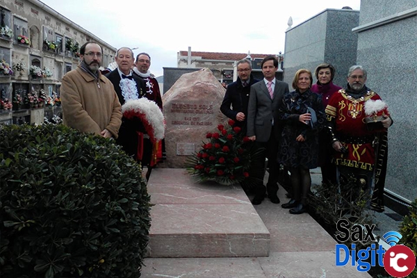 Si el 2017 fue un año cargado de actividades donde se conmemoró el centenario de Don Alberto Sols, comenzando el día 2 de febrero, donde para celebrar esta fecha tan especial se organizó un sencillo acto de homenaje en el cementerio de Sax, teniendo el honor de contar con la presencia de su hijo Jaime Sols. Nos regaló la lectura de un texto conmemorativo, escrito por el poeta sajeño Aurelio Arnedo, se descubrió una pequeña placa como recuerdo de tan memorable fecha, y se colocaron flores sobre el sepulcro.