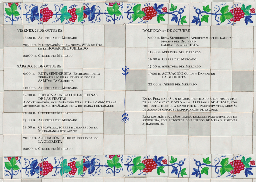 Tornem a tenir la Fira d’Oficis Artesans de Tibi. Una fira que aquest any arriba a la seva catorzena edició. Ho farà amb la pedra i l’aigua com a protagonistes. Al voltant d’aquest material trobarem diferents activitats com ara les rutes senderites. També hi haurà un grapat de parades i activitats per a tota la família. Ací teniu el programa