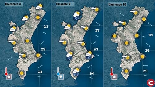 Demà dijous serà un dia assolellat i amb temperatures més altes, sobretot a la mitad sud on es deixarà sentir el ponent. Només de vesprada podran formar-se núvols de tempesta a la ibèrica pero difícilment tocaran Castelló.
