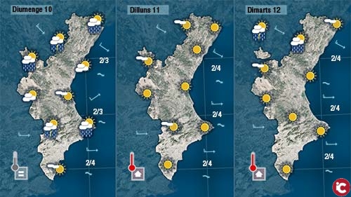 I encara que hui tenim un dia assoellat i calorós tot pareix indicar que loratge no acaba daplomar-se perquè a última hora augmentarà la nuvolositat per linterior, on fins i tot podrà caure alguna gota, anunciant larribada dun front el cap de setmana.