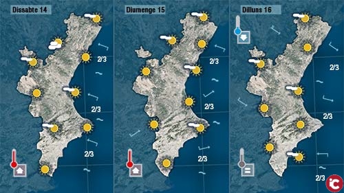 El cap de setmana serà ben calorós. Dissabte podran créixer núvols a les muntanyes del nord però en principi no espere que deixen pluja. Diumenge serà 15 de juliol, dia que habitualment comença la canícula (el moment de més calor de l’estiu) i la veritat és que s’espera un dia molt càlid per tot arreu. Tot indica que dilluns podria baixar un poc el mercuri dels termòmetres a nord en bufar mestral però a la costa continuarà arribant molt càlid.