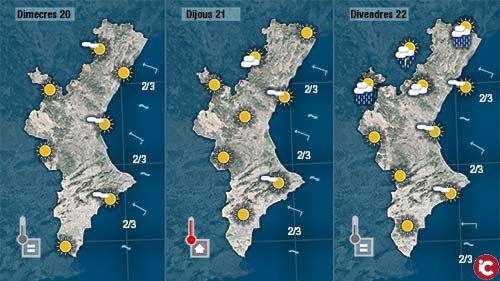 Pot ser divendres de vesprada tinguem més nuvols al nord i fins i tot puga ploure dèbilment i arribar a quallar alguna tronada en punts de muntanya, però dací a allà encara queda molt i tindrem temps danar raonant.
