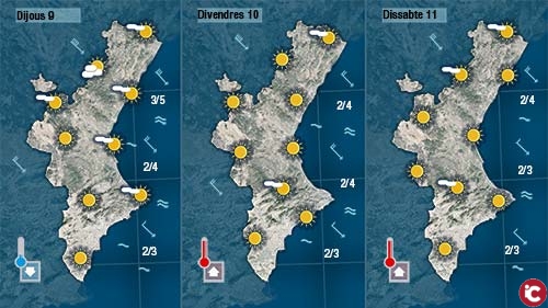 Dijous encara farà un poc més de fresca i tindrem pas de núvols que seran més abundants al nord i a la costa (on fins i tot alguns models donen possibilitat de ruixats a La Marina i La Safor.