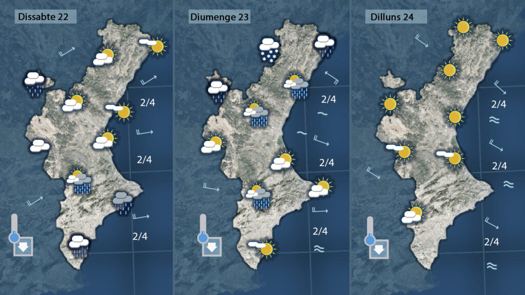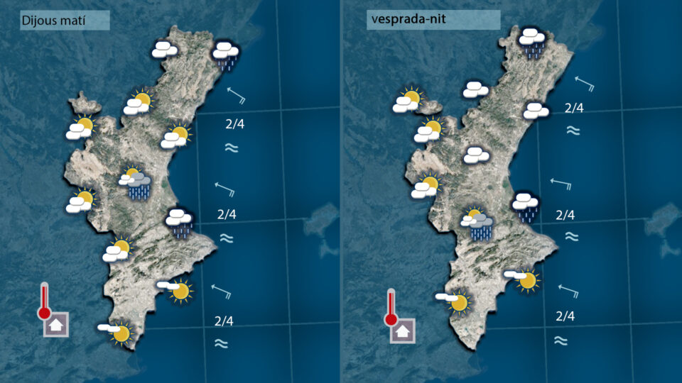 Hu notarem com les temperatures continuen la recuperació encetada ahir tot i qiue el vent es mnatindrpa bufarnt de xaloc i encara podrà ploure dèbilment a la costa.