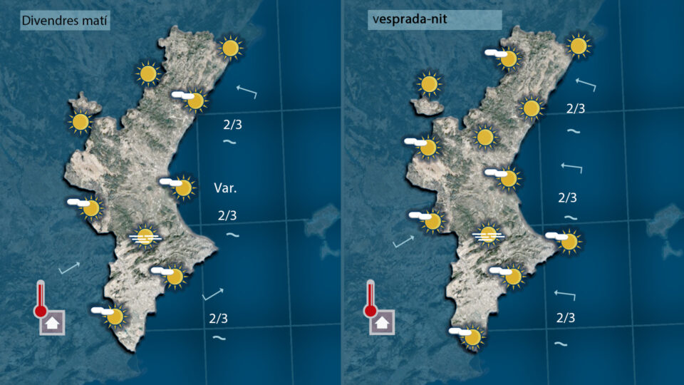 Hui amb vent fluix de llebeig notarem com de bon de matí les temperatures volen pujar més que les d’ahir especialment al sud i per l’interior