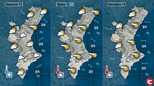 Dimecres serà el dia més fresc de la setmana. Tindrem el cel més carregat, sobretot al centre i al sud no el sol no es deixarà vore apenes en tot el dia.