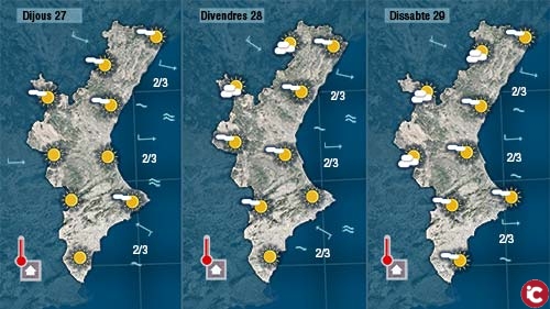 Ens espera un dia destiu. Han pujat les mínimes i també ho faran les maximes tocant i fins i tot superant els 25 graus a les comarques costarenes i en punts del centre de València.
