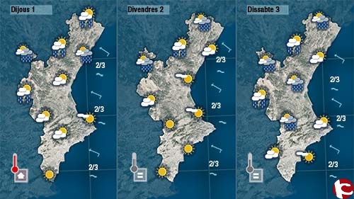 Shan vist senyals de trons des que ha despuntat el sol, i haurem destar molt atents per vore per on van creixent i cap on van les tronades que es formen per linterior i que a partir de mitja vesprada viajaran cap a la costa. Localment descarregaran ambb forta intensitat i pense que per linterior podran vindre amb pedra.