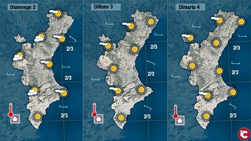 Loratge de hui serà molt semblant al dahir. Pas de núvols, ponent fluix i temperatures tan altes o més.