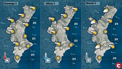 Dilluns i dimarts serà el ponent qui continue determinant loratge que anem a tindre, i tot i que les temperatures baixaran continuaran mantenint-se prou altes.