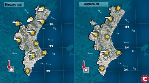 El ponent amés d’acompanar-nos durant toa la setmana anirà calfant-se conforme avancen els dies. Hui, les temperatures quedaran més o menys com les d’ahir o pujaran lleugerament.
