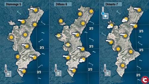 Hui encarà tindrem que esperar fins amigdia per poder disfrutar del sol. El matí és i serà fresc però pensem que esta vesprada les temperatures podran pujar lleugerament. A migdia notarem l’entrada del mestral al nord i durant la nit i matínada també es deixarà sentir a la resta de la Comunitat.