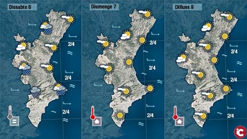 El ponent també bufarà el cap de setmana i porta compte de fer-ho també les primers dies de la setmana que ve. Dissabte podria ploure dèbilment en punts de linterior però diumenge i dilluns shaurem de conformar en vore passar els núvols sense més conseqüència.