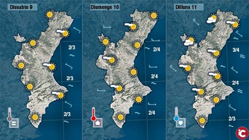 Dilluns tindrem xicotets canvis. El vent girarà a mestral i de seguida notarem com baixen les temperatures de nord a sud.