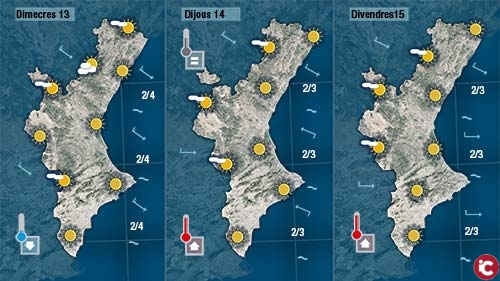 Dijous serà un dia assolellat amb les temperaturesmés altes a la mitad sud de la Comunitat mantenint-se sense canvia al nord.