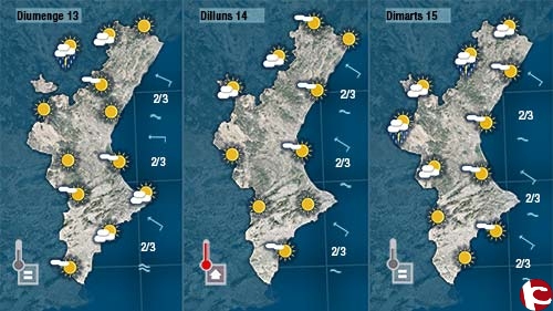 Però, tot indica que lestiu té previst tornar a poc a poc. Hui encara tindrem un ambient prou fresquet, sobretot al nord on el mestral bufarà fort accentuant la sensació de fred. Tindem pas de núvols alts però acabarà imposant-se el sol i pujant lleugerament les temperatures.