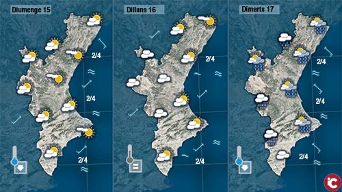 Encetarem setmana dilluns sense vore massa el sol i pendents dun possible canvi de temps a partir de dimarts. Pense que no serà cap temporal com els que hem tingut esta tardor però tot indica que el pas duna borrasca des del sud-oest de la Península cap a la Comunitat Valencia podria donar vent dorigen marítim fent que la probabilitatd e pluja siga major.
