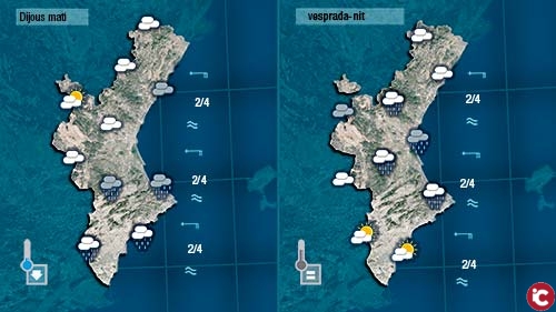Demà dijous sembla que les pluges tampoc serian generals però allà on més pluga podrien omplir-se els pluviómetres fins als 15 o 20 litres.