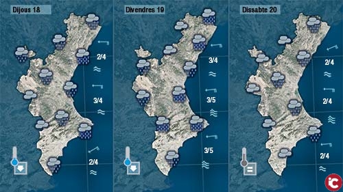 Apostem per un dijous ennuvolat a tota la Comunitat a partir de migdia perquè de matí encara mirarem al cel a tot hora per vore si arriben les anuncuades precipitacions. De vesprada es registraran pluges dintensitat moderada a forta i persistens a la costa i aniran penetrant també cap a linterior.