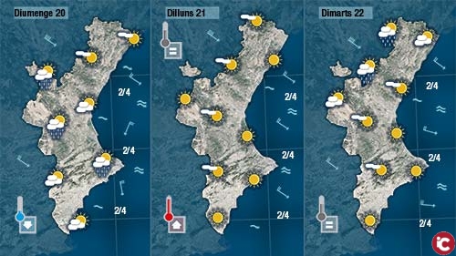 Sembla que el cap de setmana serà més ‘animat’ meteorològicament parlant però tampoc serà per a tirar coets. Tindrem més núvols però estem davant d’una situació de ponent de les que deixen ben poca pluja a la Comunitat Valenciana.