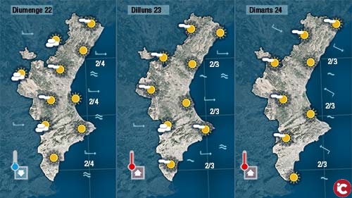 Esperem que comence a perdre força de vesprada. Durant el matí la nuvolositat encara serà abundant i no descartem ruixats dèbils al nord i per linterior. Conforme vaja encalmant el vent escamparà la nuvolositat i notarem com refresca lleugerament lambient.
