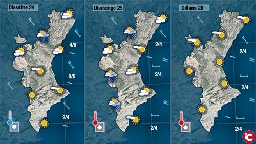 El vent encara es deixarà sentir hui amb força a la mitad nord de la Comunitat, i sobre tot al nord de Castelló on fins a migdia encara podrà superar els 80 quiòmetres. Conforme passen les hores perdrà força i girarà a ponent afavorint un ascens de les temperatures al centre del dia.
