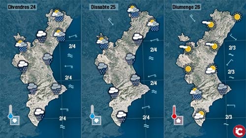 Divendres es reforçarà el llevant i els núvols cobriran tota la Comunitat Valenciana deixant precipitacions que en punts de la costa podran ser localment moderades i persistents.